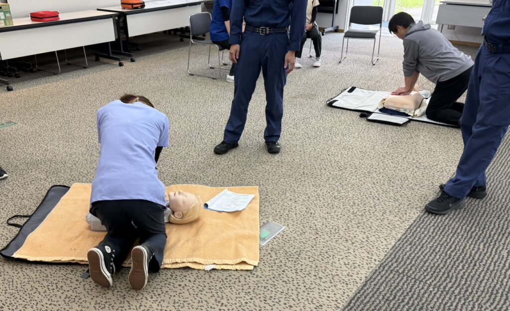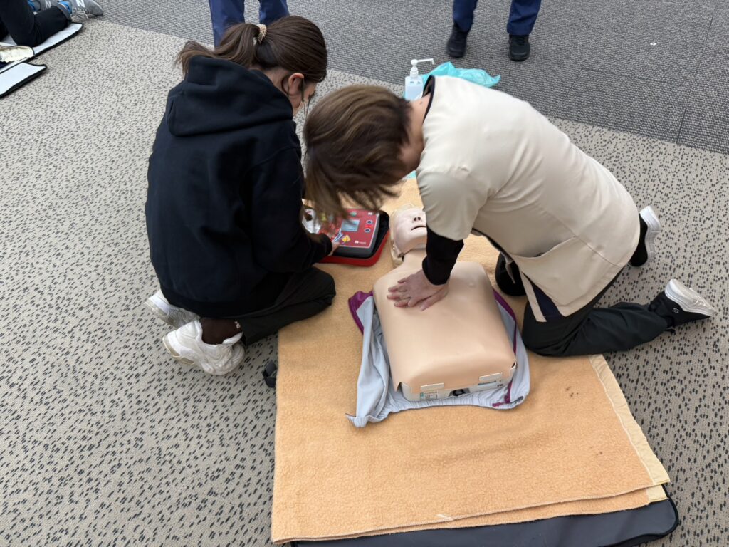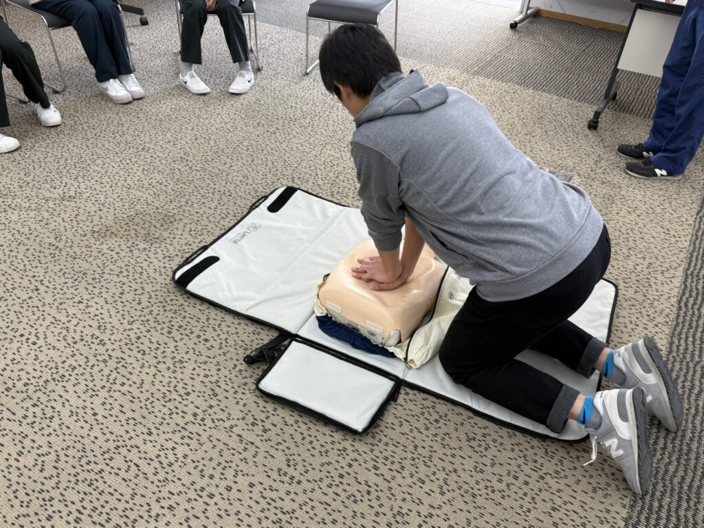 胸骨圧迫(心臓マッサージ)や人工呼吸法、AEDの使用などをしっかりと訓練しました。