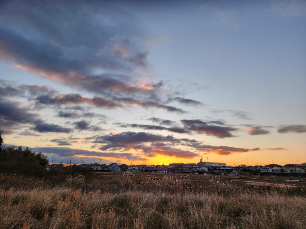 神社へ向かう際はまだ暗かったですが、帰りには日が昇り始めて明るくなってきました。